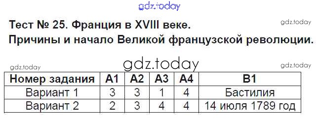 На страницах сайта gdz.today вы найдете учебный и вспомогательный материал, направленный на улучшения знаний школьной программы. ГДЗ - онлайн мир знаний Решение к тестам 25 Контрольно-измерительным материалам (КИМ) по Истории для 7 класса Волкова ВАКО 2017