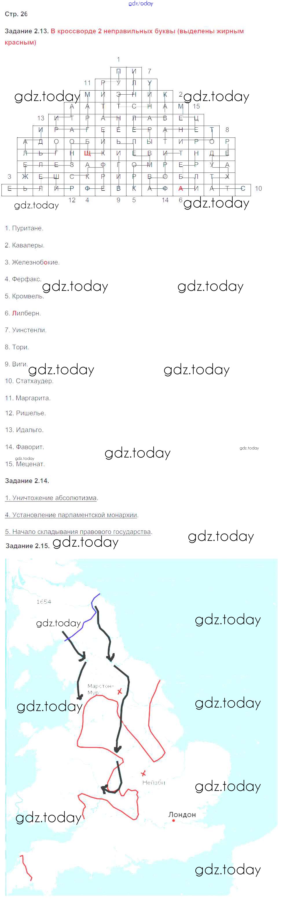 На страницах сайта gdz.today вы найдете учебный и вспомогательный материал, направленный на улучшения знаний школьной программы. ГДЗ - онлайн мир знаний Страницы (решение) 26 Рабочей тетради по Истории для 7 класса Пономарев Экзамен УМК 2016