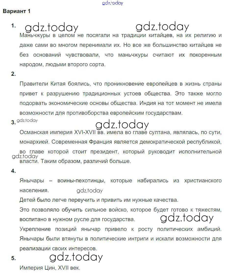 Ответы к Проверочная работа 2 Страны Востока в XVI-XVIII в веках (решение) Вариант 1 Тетради-экзаменатору по Истории для 7 класса Уколова Просвещение Сферы 2017