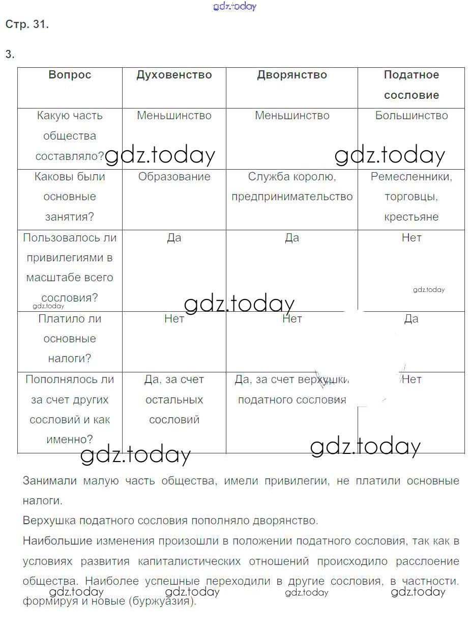 На страницах сайта gdz.today вы найдете учебный и вспомогательный материал, направленный на улучшения знаний школьной программы. ГДЗ - онлайн мир знаний Страницы (решение) 31 Тетради-тренажеру по Истории для 7 класса Ведюшкин, Ведюшкина Просвещение Сферы 2016