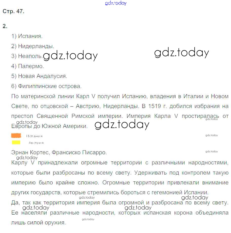 На страницах сайта gdz.today вы найдете учебный и вспомогательный материал, направленный на улучшения знаний школьной программы. ГДЗ - онлайн мир знаний Страницы (решение) 47 Тетради-тренажеру по Истории для 7 класса Ведюшкин, Ведюшкина Просвещение Сферы 2016