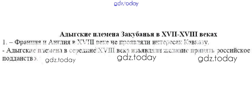Решение к теме 11. Адыгские племена Закубанья в XVII-XVIII веках