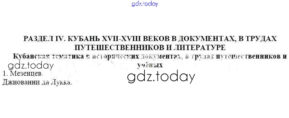На страницах сайта gdz.today вы найдете учебный и вспомогательный материал, направленный на улучшения знаний школьной программы. ГДЗ - онлайн мир знаний Решение к теме 26. Кубанская тематика в исторических документах, в трудах путешественников и учёных 1 Рабочей тетради по Кубановедению для 7 класса Лукьянов Перспективы образования 2018