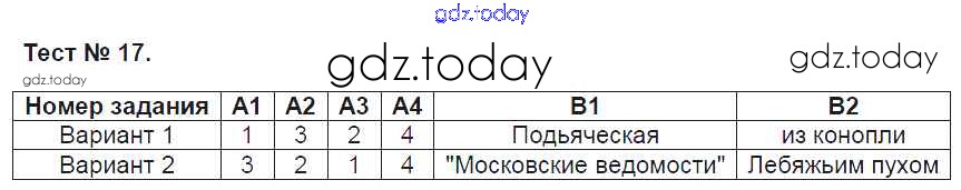 На страницах сайта gdz.today вы найдете учебный и вспомогательный материал, направленный на улучшения знаний школьной программы. ГДЗ - онлайн мир знаний Решение к тестам Тест №17 Контрольно-измерительным материалам (КИМ) по Литературе для 7 класса Зубова ВАКО 2016