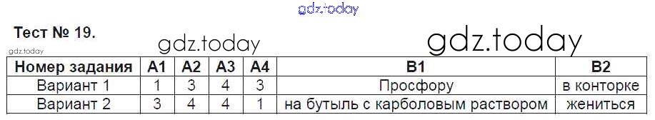 Ответы к Решение к тестам Тест №19 Контрольно-измерительным материалам (КИМ) по Литературе для 7 класса Зубова ВАКО 2016
