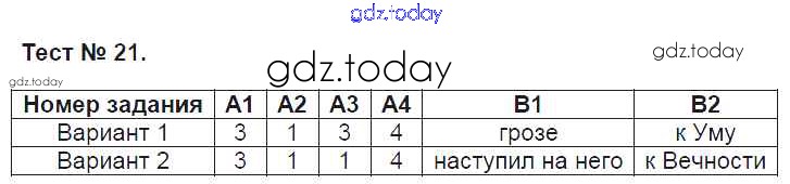 Ответы к Решение к тестам Тест №21 Контрольно-измерительным материалам (КИМ) по Литературе для 7 класса Зубова ВАКО 2016