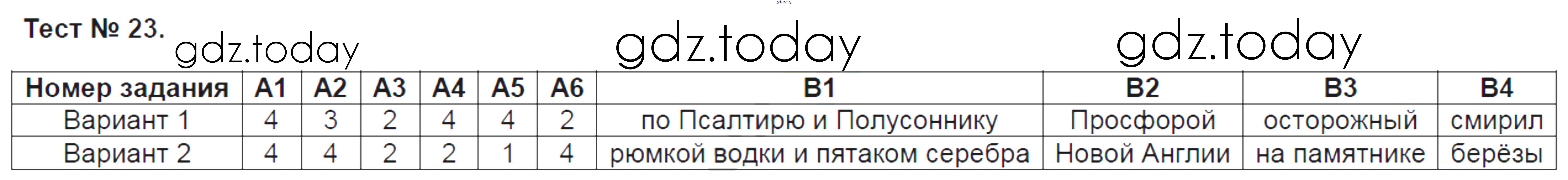 Ответы к Решение к тестам Тест №23 Контрольно-измерительным материалам (КИМ) по Литературе для 7 класса Зубова ВАКО 2016