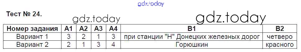 Ответы к Решение к тестам Тест №24 Контрольно-измерительным материалам (КИМ) по Литературе для 7 класса Зубова ВАКО 2016