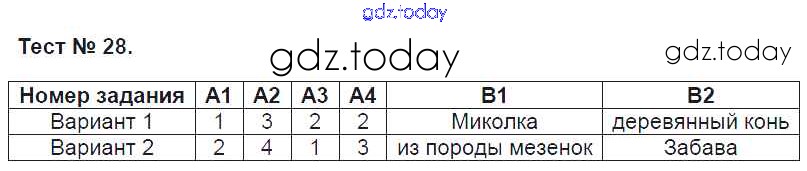 Ответы к Решение к тестам Тест №28 Контрольно-измерительным материалам (КИМ) по Литературе для 7 класса Зубова ВАКО 2016