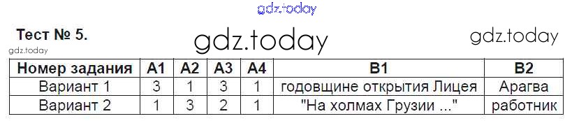 На страницах сайта gdz.today вы найдете учебный и вспомогательный материал, направленный на улучшения знаний школьной программы. ГДЗ - онлайн мир знаний Решение к тестам Тест №5 Контрольно-измерительным материалам (КИМ) по Литературе для 7 класса Зубова ВАКО 2016