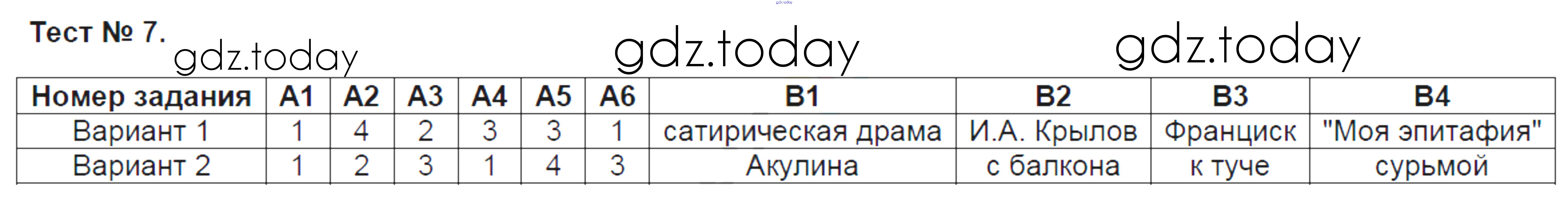 На страницах сайта gdz.today вы найдете учебный и вспомогательный материал, направленный на улучшения знаний школьной программы. ГДЗ - онлайн мир знаний Решение к тестам Тест №7 Контрольно-измерительным материалам (КИМ) по Литературе для 7 класса Зубова ВАКО 2016
