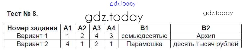 Ответы к Решение к тестам Тест №8 Контрольно-измерительным материалам (КИМ) по Литературе для 7 класса Зубова ВАКО 2016