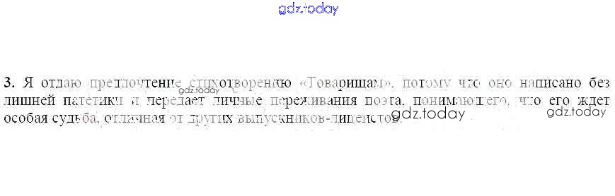На страницах сайта gdz.today вы найдете учебный и вспомогательный материал, направленный на улучшения знаний школьной программы. ГДЗ - онлайн мир знаний Выскажите свое отношение к прочитанному Разлука. Товарищам 3 Учебнику по Литературе для 7 класса Ланин, Устинова Вентана-граф Алгоритм успеха 2018