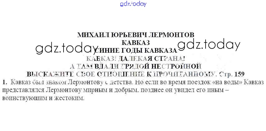 На страницах сайта gdz.today вы найдете учебный и вспомогательный материал, направленный на улучшения знаний школьной программы. ГДЗ - онлайн мир знаний Выскажите свое отношение к прочитанному Михаил Юрьевич Лермонтов. Кавказ 1 Учебнику по Литературе для 7 класса Ланин, Устинова Вентана-граф Алгоритм успеха 2018