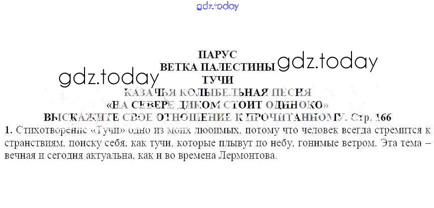 На страницах сайта gdz.today вы найдете учебный и вспомогательный материал, направленный на улучшения знаний школьной программы. ГДЗ - онлайн мир знаний Выскажите свое отношение к прочитанному Парус. Ветка Палестины. Тучи 1 Учебнику по Литературе для 7 класса Ланин, Устинова Вентана-граф Алгоритм успеха 2018