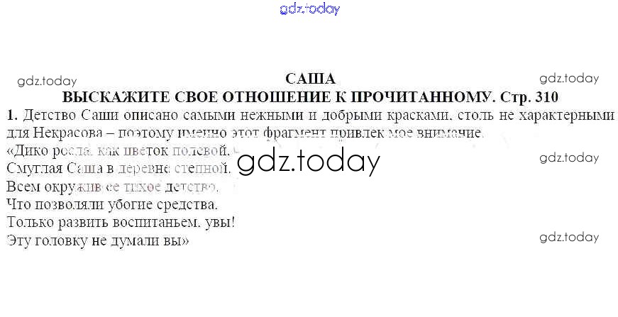 На страницах сайта gdz.today вы найдете учебный и вспомогательный материал, направленный на улучшения знаний школьной программы. ГДЗ - онлайн мир знаний Выскажите свое отношение к прочитанному Саша 1 Учебнику по Литературе для 7 класса Ланин, Устинова Вентана-граф Алгоритм успеха 2018