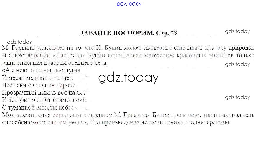 На страницах сайта gdz.today вы найдете учебный и вспомогательный материал, направленный на улучшения знаний школьной программы. ГДЗ - онлайн мир знаний Родина. Листопад. Огонь. Слово Решение к части 2 Давайте поспорим Учебнику по Литературе для 7 класса Ланин, Устинова Вентана-граф Алгоритм успеха 2018