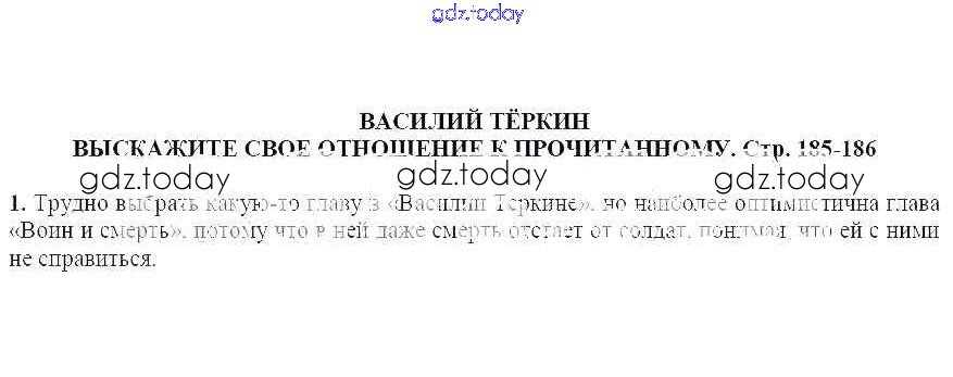 На страницах сайта gdz.today вы найдете учебный и вспомогательный материал, направленный на улучшения знаний школьной программы. ГДЗ - онлайн мир знаний Выскажите свое отношение к прочитанному Василий Тёркин 1 Учебнику по Литературе для 7 класса Ланин, Устинова Вентана-граф Алгоритм успеха 2018