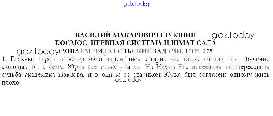 На страницах сайта gdz.today вы найдете учебный и вспомогательный материал, направленный на улучшения знаний школьной программы. ГДЗ - онлайн мир знаний Решаем читательские задачи Василий Макарович Шукшин. Космос, нервная система и шмат сала 1 Учебнику по Литературе для 7 класса Ланин, Устинова Вентана-граф Алгоритм успеха 2018