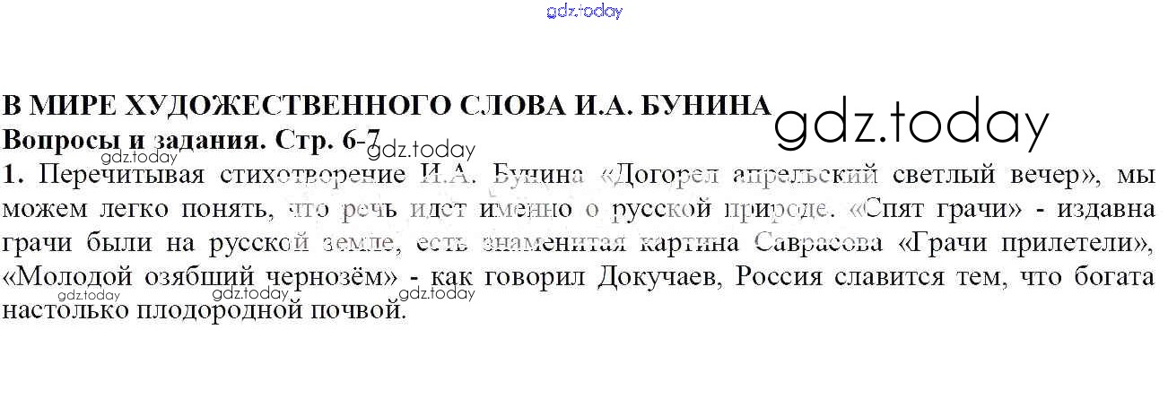 На страницах сайта gdz.today вы найдете учебный и вспомогательный материал, направленный на улучшения знаний школьной программы. ГДЗ - онлайн мир знаний Вопросы и задания (стр. 6-7) В мире художественного слова Бунина 1 Учебнику по Литературе для 7 класса Меркин Русское слово Инновационная школа 2017