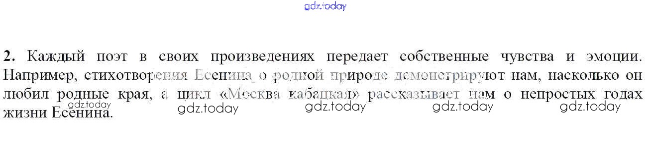 На страницах сайта gdz.today вы найдете учебный и вспомогательный материал, направленный на улучшения знаний школьной программы. ГДЗ - онлайн мир знаний Вопросы и задания Сергей Александрович Есенин. О себе (фрагмент) 2 Учебнику по Литературе для 7 класса Меркин Русское слово Инновационная школа 2017