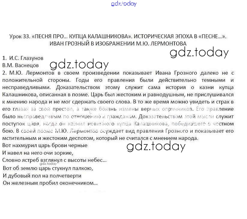 На страницах сайта gdz.today вы найдете учебный и вспомогательный материал, направленный на улучшения знаний школьной программы. ГДЗ - онлайн мир знаний Уроки Решение к части 1 33 Рабочей тетради по Литературе для 7 класса Соловьева Русское слово Инновационная школа 2016