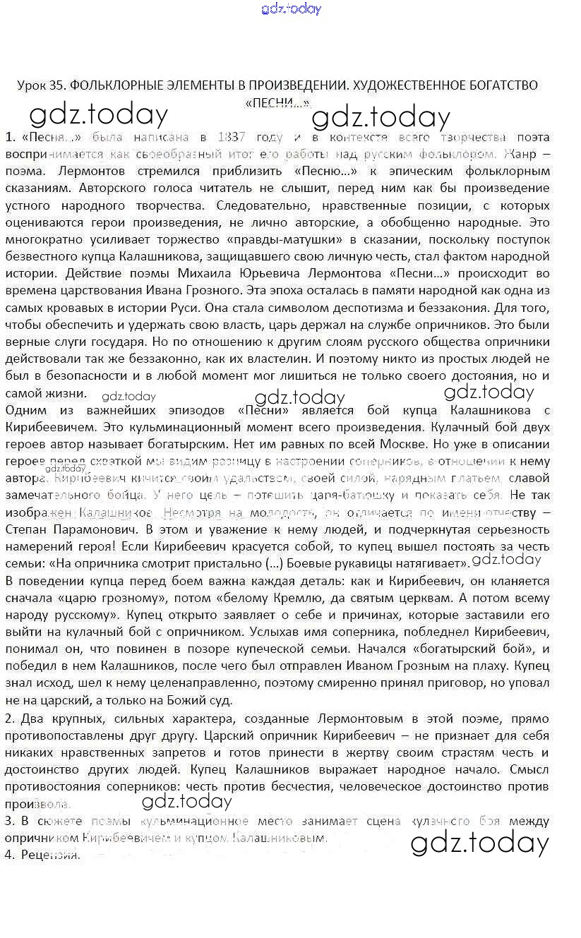 На страницах сайта gdz.today вы найдете учебный и вспомогательный материал, направленный на улучшения знаний школьной программы. ГДЗ - онлайн мир знаний Уроки Решение к части 1 35 Рабочей тетради по Литературе для 7 класса Соловьева Русское слово Инновационная школа 2016