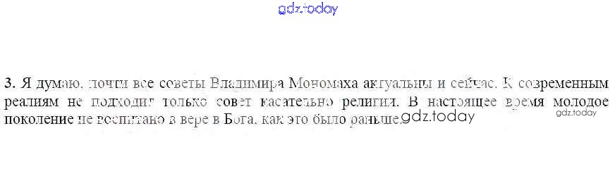 На страницах сайта gdz.today вы найдете учебный и вспомогательный материал, направленный на улучшения знаний школьной программы. ГДЗ - онлайн мир знаний Индивидуальные задания «Поучение» Владимира Мономаха 3 Учебнику по Литературе для 7 класса Чертов, Трубина Просвещение 2018