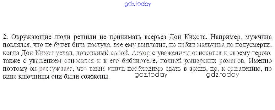 На страницах сайта gdz.today вы найдете учебный и вспомогательный материал, направленный на улучшения знаний школьной программы. ГДЗ - онлайн мир знаний Вопросы и задания М. Де Сервантес Сааведра. Хитроумный идальго дон Кихот Ламанчский 2 Учебнику по Литературе для 7 класса Чертов, Трубина Просвещение 2018