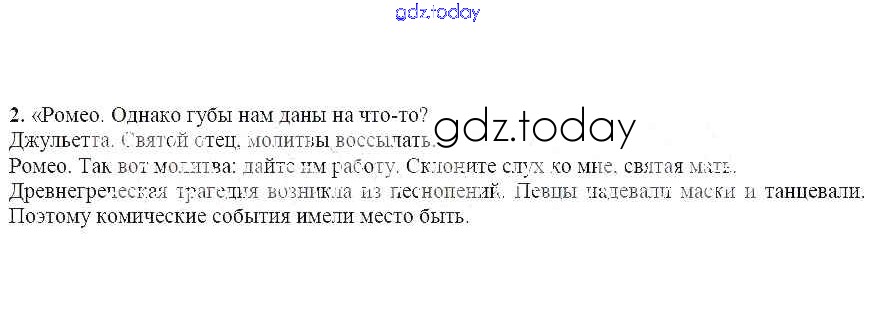 На страницах сайта gdz.today вы найдете учебный и вспомогательный материал, направленный на улучшения знаний школьной программы. ГДЗ - онлайн мир знаний Вопросы и задания У. Шекспир. Ромео и Джульетта 2 Учебнику по Литературе для 7 класса Чертов, Трубина Просвещение 2018