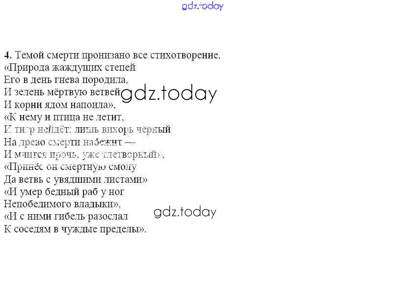 На страницах сайта gdz.today вы найдете учебный и вспомогательный материал, направленный на улучшения знаний школьной программы. ГДЗ - онлайн мир знаний Вопросы и задания Анчар 4 Учебнику по Литературе для 7 класса Чертов, Трубина Просвещение 2018