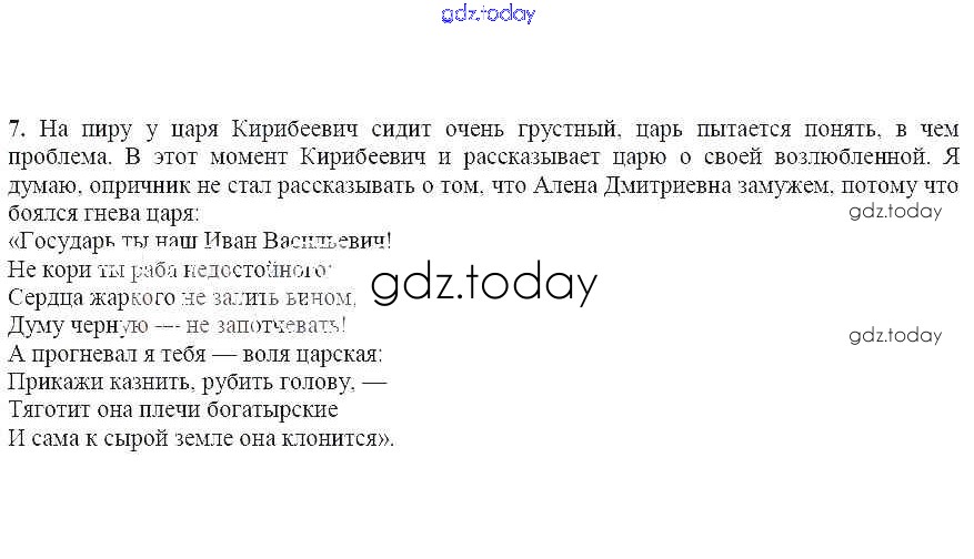 На страницах сайта gdz.today вы найдете учебный и вспомогательный материал, направленный на улучшения знаний школьной программы. ГДЗ - онлайн мир знаний Вопросы и задания Песня про царя Ивана Васильевича 7 Учебнику по Литературе для 7 класса Чертов, Трубина Просвещение 2018