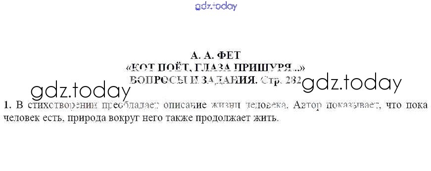На страницах сайта gdz.today вы найдете учебный и вспомогательный материал, направленный на улучшения знаний школьной программы. ГДЗ - онлайн мир знаний Вопросы и задания А. А. Фет. Кот поёт, глаза прищуря 1 Учебнику по Литературе для 7 класса Чертов, Трубина Просвещение 2018