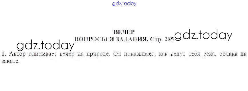 На страницах сайта gdz.today вы найдете учебный и вспомогательный материал, направленный на улучшения знаний школьной программы. ГДЗ - онлайн мир знаний Вопросы и задания Вечер 1 Учебнику по Литературе для 7 класса Чертов, Трубина Просвещение 2018
