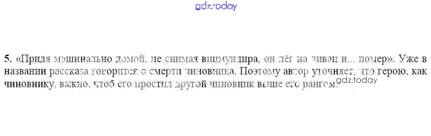 На страницах сайта gdz.today вы найдете учебный и вспомогательный материал, направленный на улучшения знаний школьной программы. ГДЗ - онлайн мир знаний Вопросы и задания Смерть чиновника 5 Учебнику по Литературе для 7 класса Чертов, Трубина Просвещение 2018