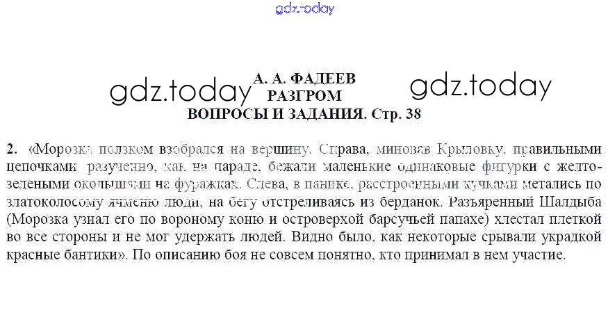 На страницах сайта gdz.today вы найдете учебный и вспомогательный материал, направленный на улучшения знаний школьной программы. ГДЗ - онлайн мир знаний Вопросы и задания А. А. Фадеев. Разгром 2 Учебнику по Литературе для 7 класса Чертов, Трубина Просвещение 2018