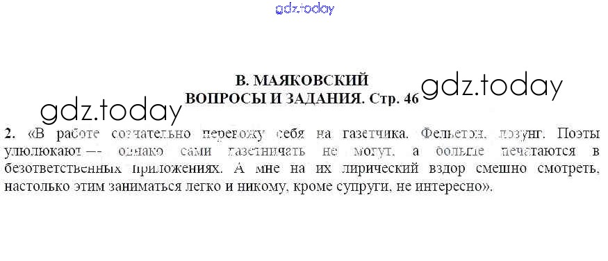 На страницах сайта gdz.today вы найдете учебный и вспомогательный материал, направленный на улучшения знаний школьной программы. ГДЗ - онлайн мир знаний Вопросы и задания В. Маяковский 2 Учебнику по Литературе для 7 класса Чертов, Трубина Просвещение 2018