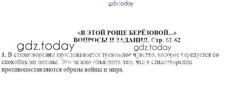 На страницах сайта gdz.today вы найдете учебный и вспомогательный материал, направленный на улучшения знаний школьной программы. ГДЗ - онлайн мир знаний Вопросы и задания В этой роще берёзовой 1 Учебнику по Литературе для 7 класса Чертов, Трубина Просвещение 2018
