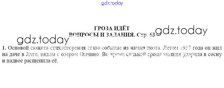 На страницах сайта gdz.today вы найдете учебный и вспомогательный материал, направленный на улучшения знаний школьной программы. ГДЗ - онлайн мир знаний Вопросы и задания Гроза идет 1 Учебнику по Литературе для 7 класса Чертов, Трубина Просвещение 2018