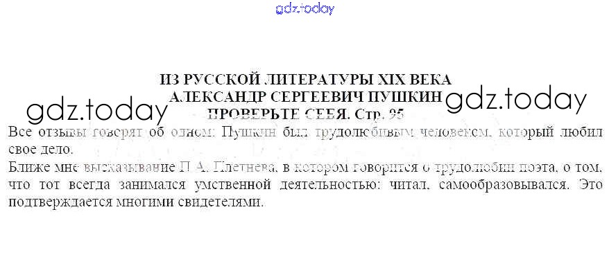 На страницах сайта gdz.today вы найдете учебный и вспомогательный материал, направленный на улучшения знаний школьной программы. ГДЗ - онлайн мир знаний Из русской литературы XIX века. Александр Сергеевич Пушкин Решение к части 1 Проверьте себя Учебнику по Литературе для 7 класса Коровина, Журавлев Просвещение 2016