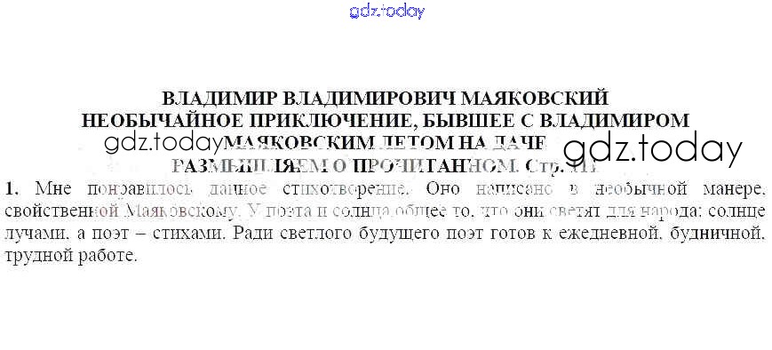 На страницах сайта gdz.today вы найдете учебный и вспомогательный материал, направленный на улучшения знаний школьной программы. ГДЗ - онлайн мир знаний Размышляем о прочитанном Владимир Владимирович Маяковский 1 Учебнику по Литературе для 7 класса Коровина, Журавлев Просвещение 2016