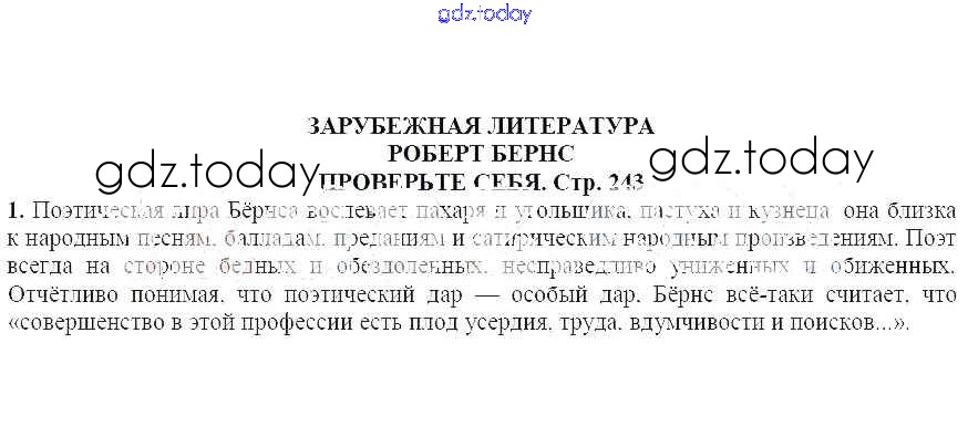 На страницах сайта gdz.today вы найдете учебный и вспомогательный материал, направленный на улучшения знаний школьной программы. ГДЗ - онлайн мир знаний Проверьте себя Зарубежная литература. Роберт Бернс 1 Учебнику по Литературе для 7 класса Коровина, Журавлев Просвещение 2016