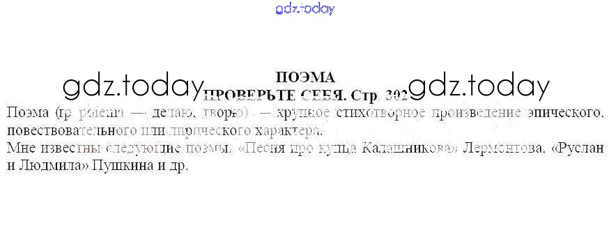 На страницах сайта gdz.today вы найдете учебный и вспомогательный материал, направленный на улучшения знаний школьной программы. ГДЗ - онлайн мир знаний Поэма Справочные материалы по теории литературы Проверьте себя Учебнику по Литературе для 7 класса Коровина, Журавлев Просвещение 2016