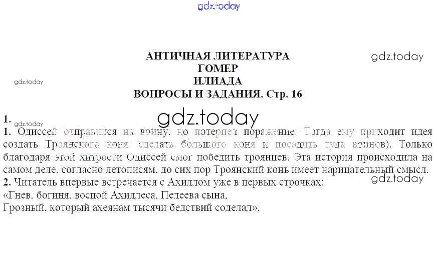 На страницах сайта gdz.today вы найдете учебный и вспомогательный материал, направленный на улучшения знаний школьной программы. ГДЗ - онлайн мир знаний Вопросы и задания Античная литература. Гомер. Илиада 1 Учебнику-хрестоматии по Литературе для 7 класса Курдюмова Дрофа Вертикаль 2018