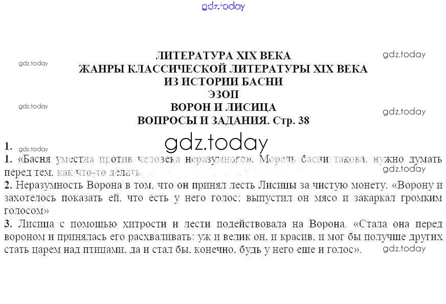 На страницах сайта gdz.today вы найдете учебный и вспомогательный материал, направленный на улучшения знаний школьной программы. ГДЗ - онлайн мир знаний Вопросы и задания Из истории басни. Эзоп. Ворон и лисица 1 Учебнику-хрестоматии по Литературе для 7 класса Курдюмова Дрофа Вертикаль 2018