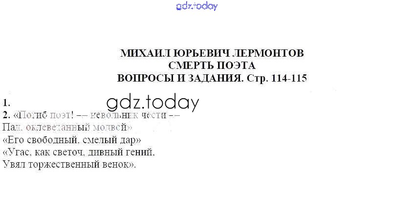 На страницах сайта gdz.today вы найдете учебный и вспомогательный материал, направленный на улучшения знаний школьной программы. ГДЗ - онлайн мир знаний Вопросы и задания Михаил Юрьевич Лермонтов. Смерть поэта 1 Учебнику-хрестоматии по Литературе для 7 класса Курдюмова Дрофа Вертикаль 2018