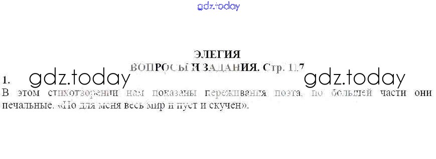 На страницах сайта gdz.today вы найдете учебный и вспомогательный материал, направленный на улучшения знаний школьной программы. ГДЗ - онлайн мир знаний Вопросы и задания Элегия 1 Учебнику-хрестоматии по Литературе для 7 класса Курдюмова Дрофа Вертикаль 2018