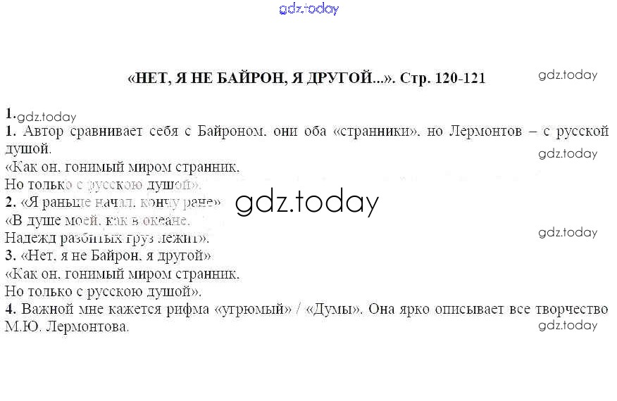 На страницах сайта gdz.today вы найдете учебный и вспомогательный материал, направленный на улучшения знаний школьной программы. ГДЗ - онлайн мир знаний Нет, я не Байрон, я другой... Решение к части 1 1 Учебнику-хрестоматии по Литературе для 7 класса Курдюмова Дрофа Вертикаль 2018