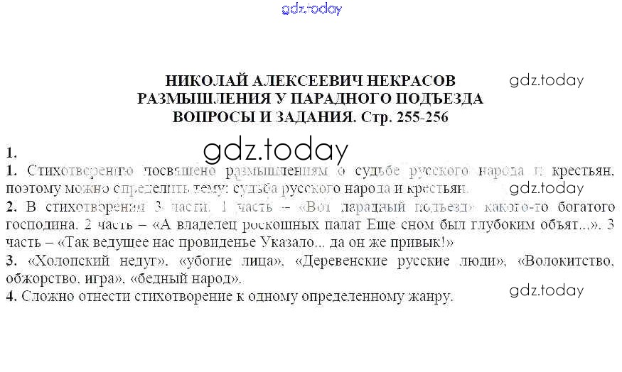 На страницах сайта gdz.today вы найдете учебный и вспомогательный материал, направленный на улучшения знаний школьной программы. ГДЗ - онлайн мир знаний Вопросы и задания Николай Алексеевич Некрасов. Размышления у парадного подъезда 1 Учебнику-хрестоматии по Литературе для 7 класса Курдюмова Дрофа Вертикаль 2018