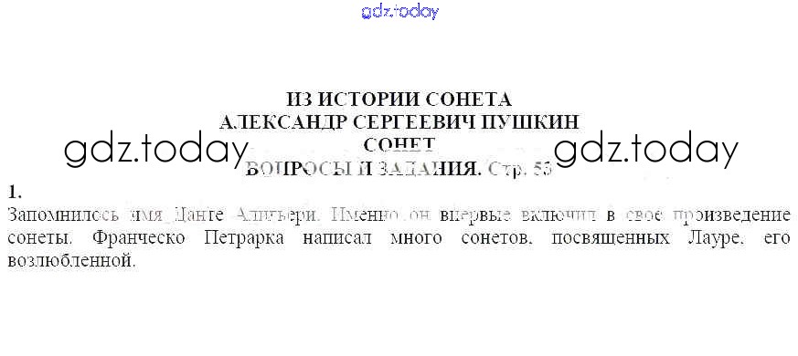 На страницах сайта gdz.today вы найдете учебный и вспомогательный материал, направленный на улучшения знаний школьной программы. ГДЗ - онлайн мир знаний Вопросы и задания Александр Сергеевич Пушкин. Сонет 1 Учебнику-хрестоматии по Литературе для 7 класса Курдюмова Дрофа Вертикаль 2018